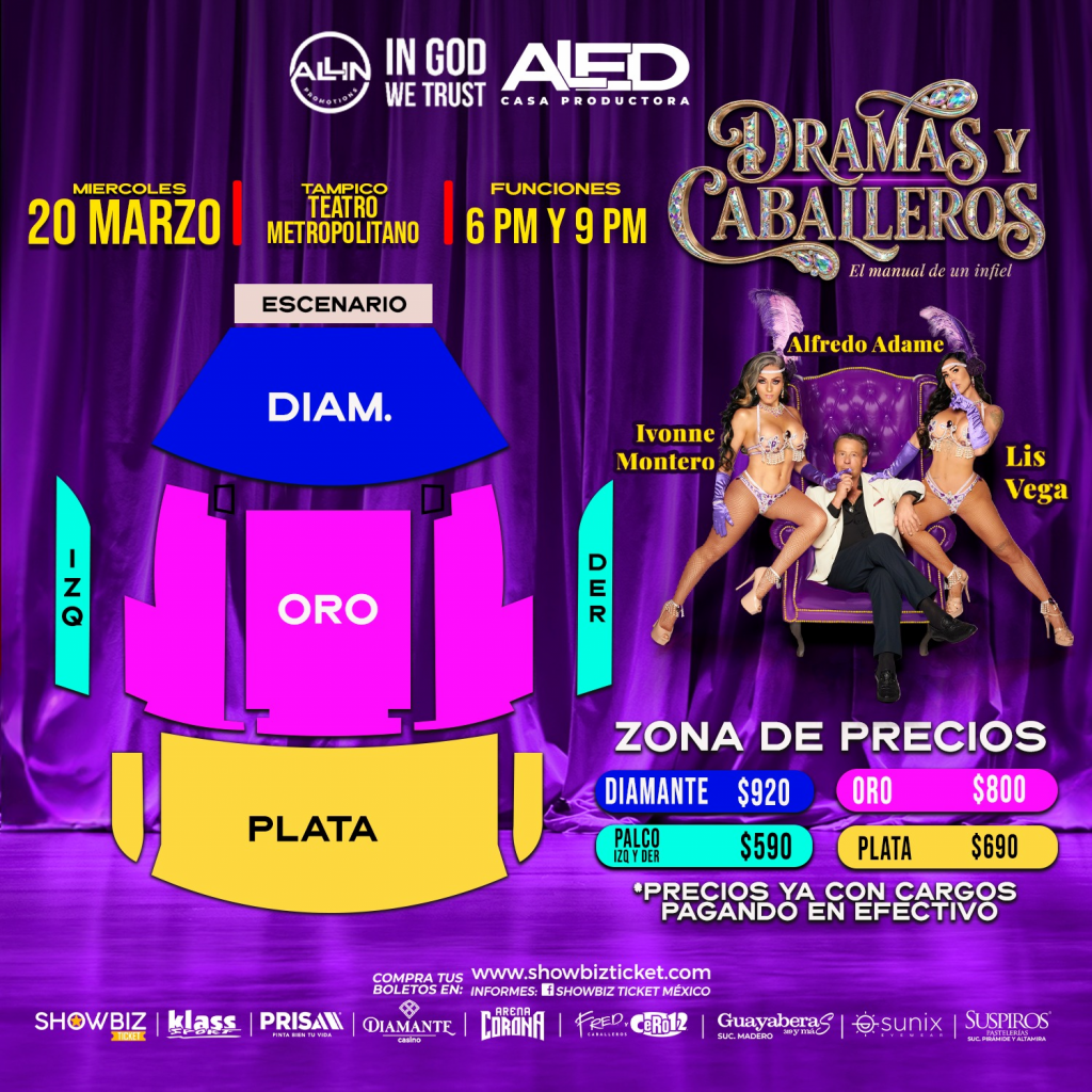 Los boletos para Dramas y Caballeros pueden adquirirse a través de la plataforma Showbiz Ticket, un sistema de venta de entradas que distribuye accesos para distintos espectáculos en México.